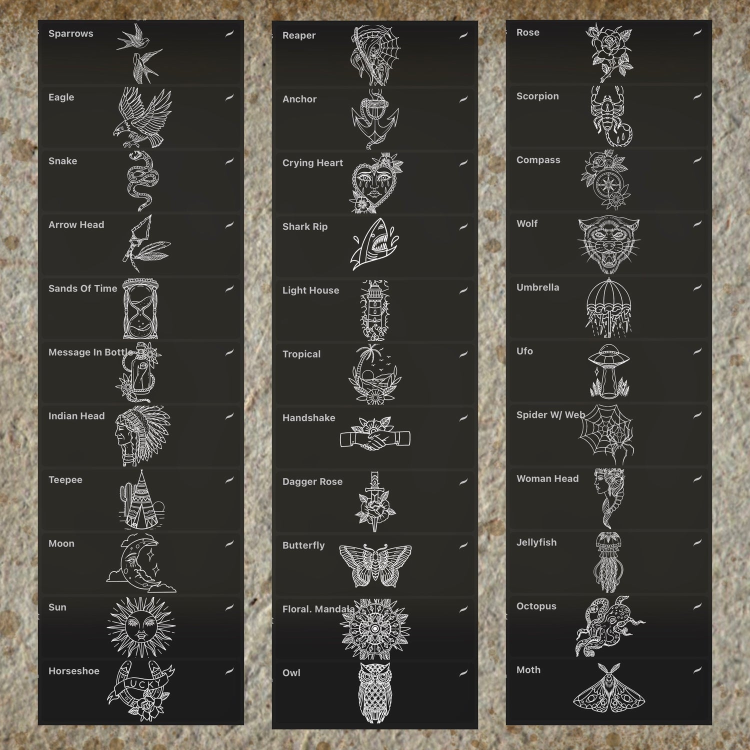 Traditional Set 2, 35 Tattoo Flash Stamps